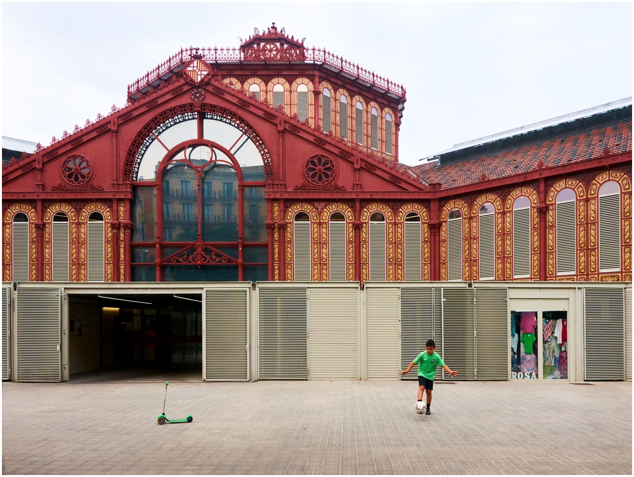 Ad una prima lettura superficiale la struttura di sfondo colpisce per la sua valenza cromatica e per la minuziosa quantità dei dettagli che potrebbe rubare la scena ....ma il piccolo calciatore per me è il fulcro della composizione, non tanto per la sua componente dinamico-volumetrica che risulta essere minimale ma per il suo abbigliamento...il verde della maglietta che fa pendant con il monopattino e con il capo esposto in vetrina...che in basso riporta la scritta... ROSA.. mistero da risolvere...chiudo dicendo..."la foto mi piace " .....ciao gianni.