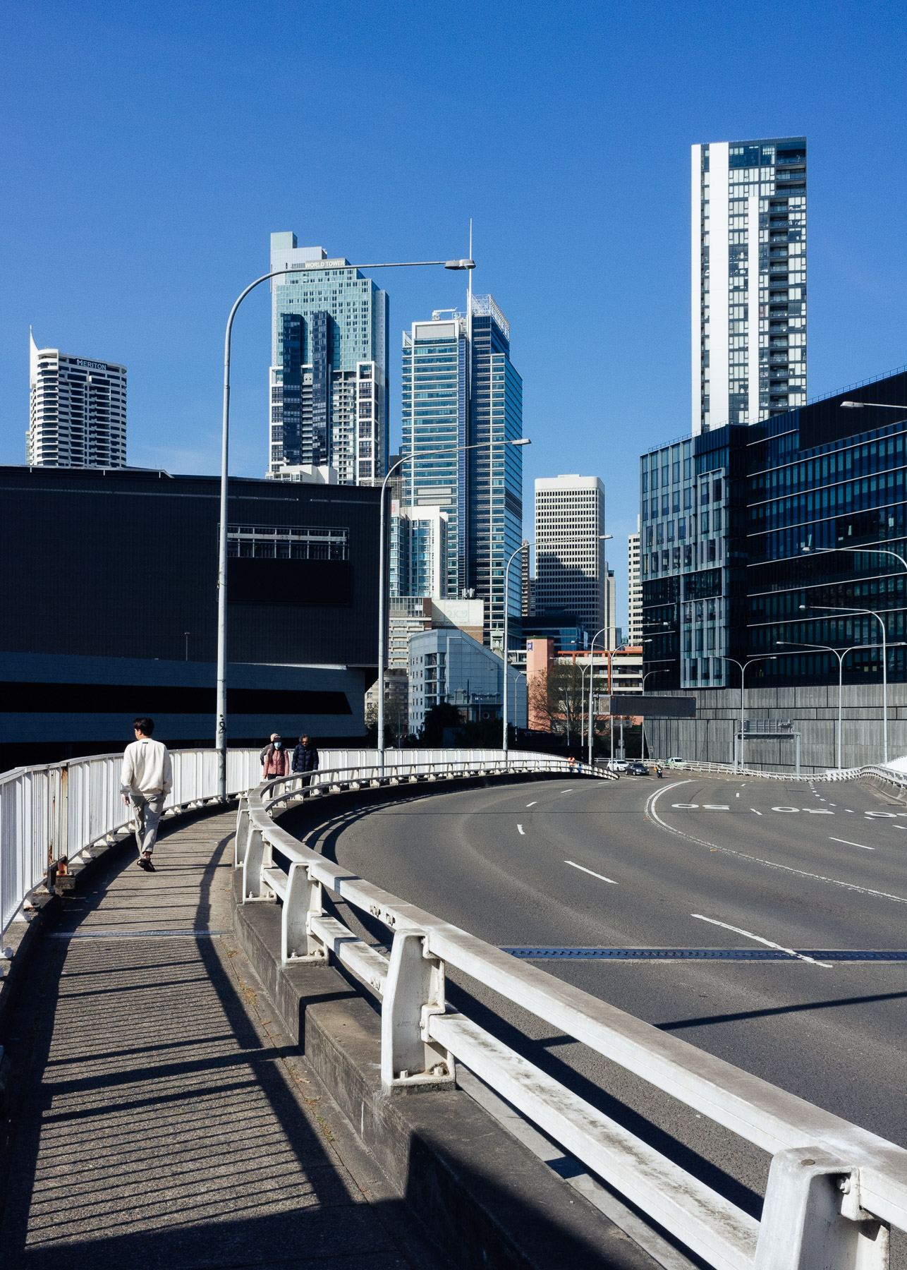 Una vista urbana gradevole in cui la semi curva ci accompagna verso i grattacieli, in questo caso le figure umane mi sembrano poco incisive e non determinanti nell'economia globale dello scatto, presumo sarebbe servito almeno un pizzico di colore caldo sul passante più vicino.