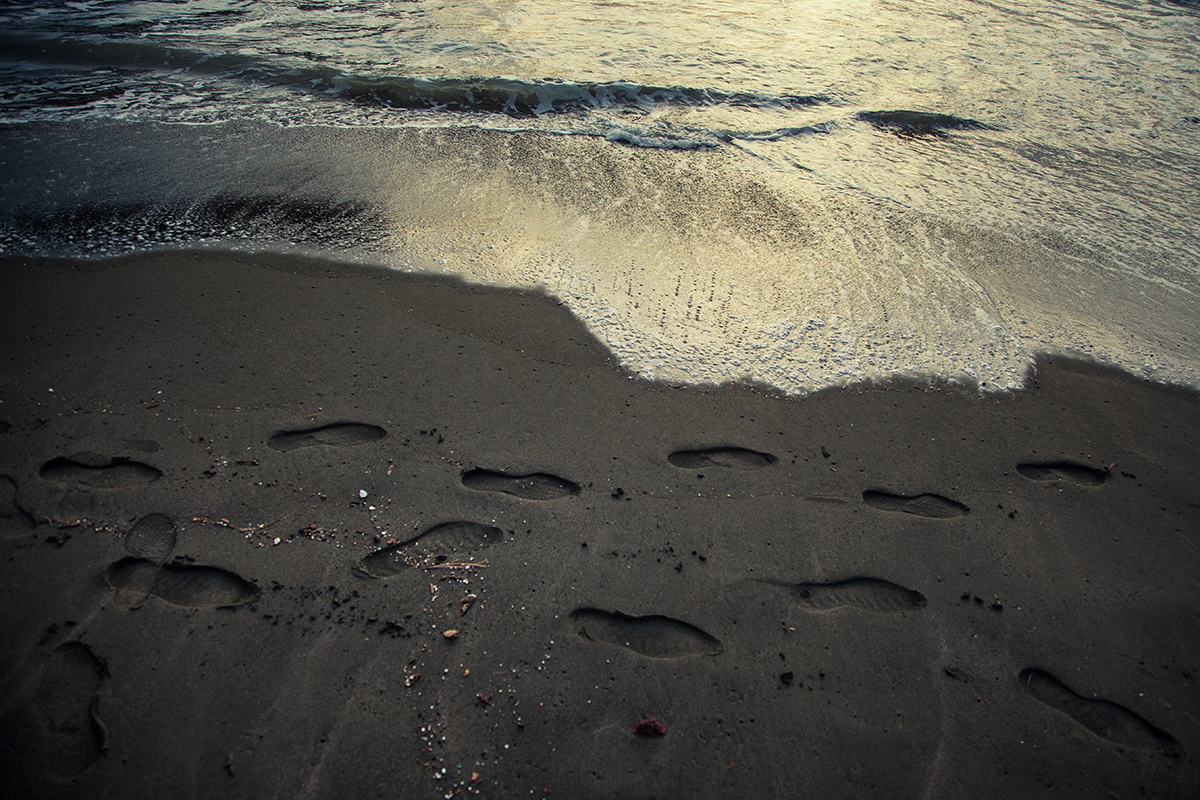 Le orme sono bene incise sulla battigia e fra poco il bianco abbagliante delle acque le travolgerà e diventeranno solo un ricordo.