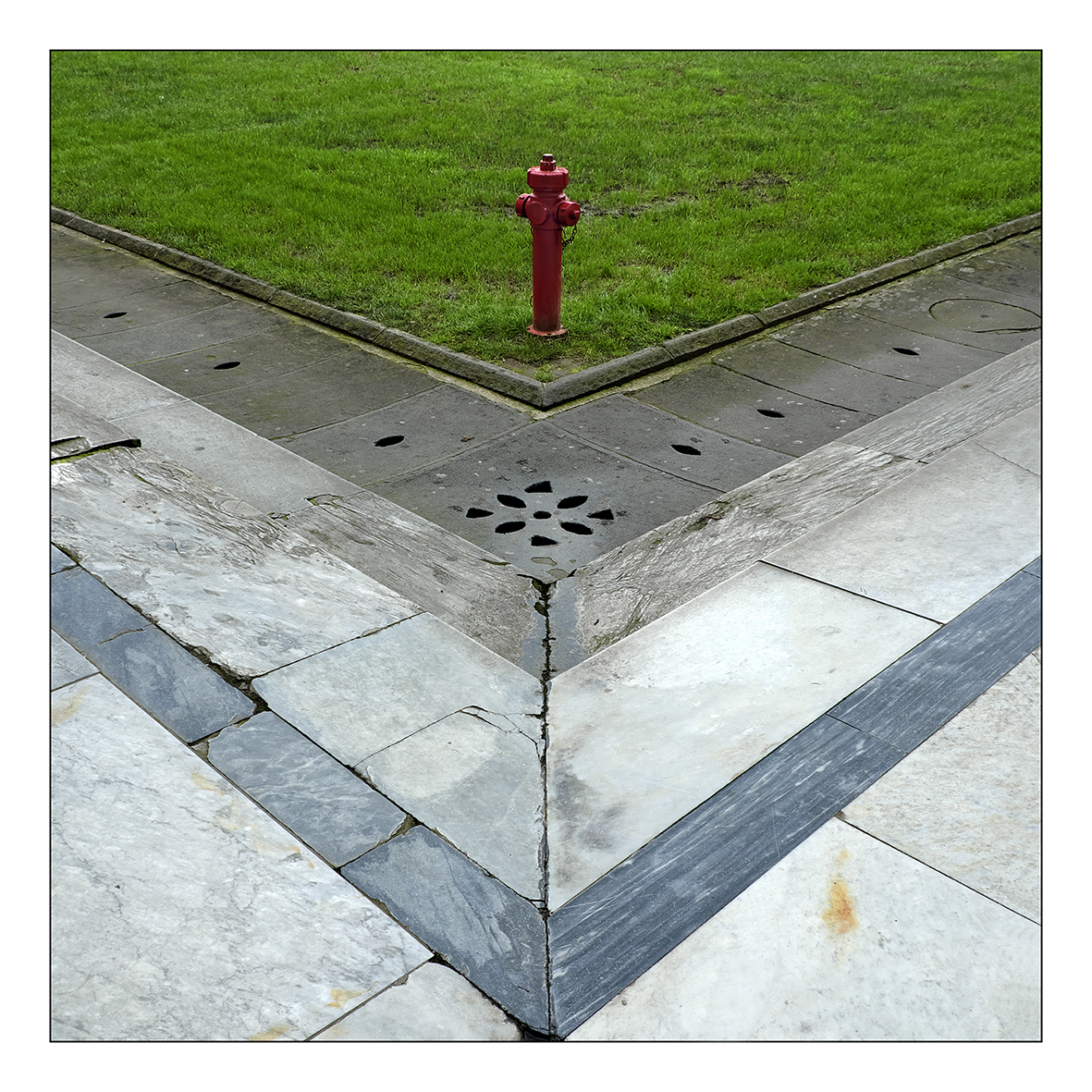 Questa serie di angoli convergenti che culmina nell'idrante è una vista abbastanza singolare e che cattura l'attenzione dell'osservatore come lo fa il contrasto verde rosso, la composizione precisa ha messo tutto al posto giusto ed il risultato finale è più che soddisfacente.