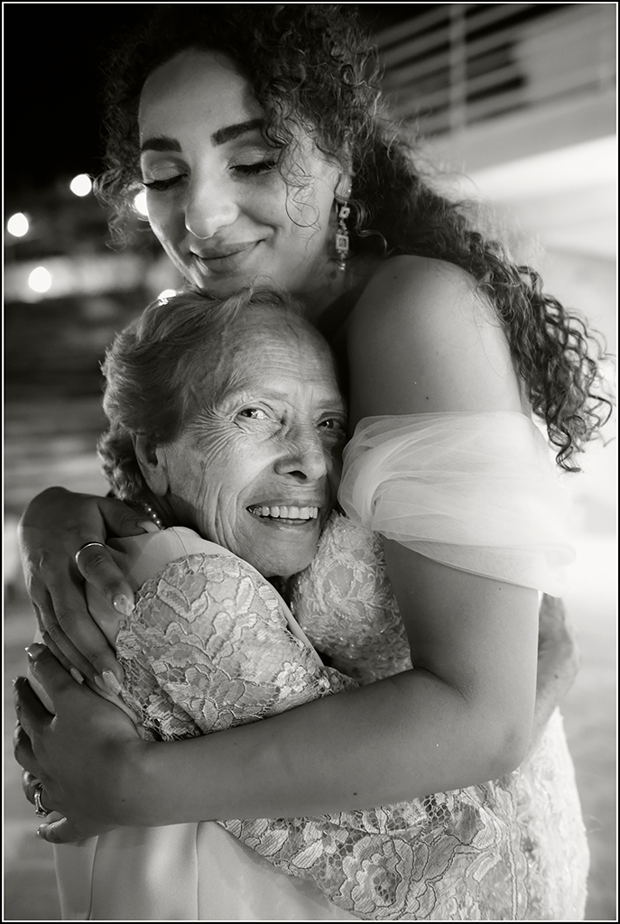 Un'abbraccio felice di una nonna con la nipote che va in sposa ( presumo)