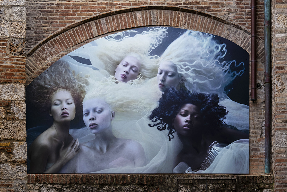 Chiarisco che l'immagine non l'ho collocata io ( in realtà, quindi, la foto non è mia... ), era visibile così come la vedi per le vie del borgo di Sovicille ( SI ), nell'ambito del Siena Awards.