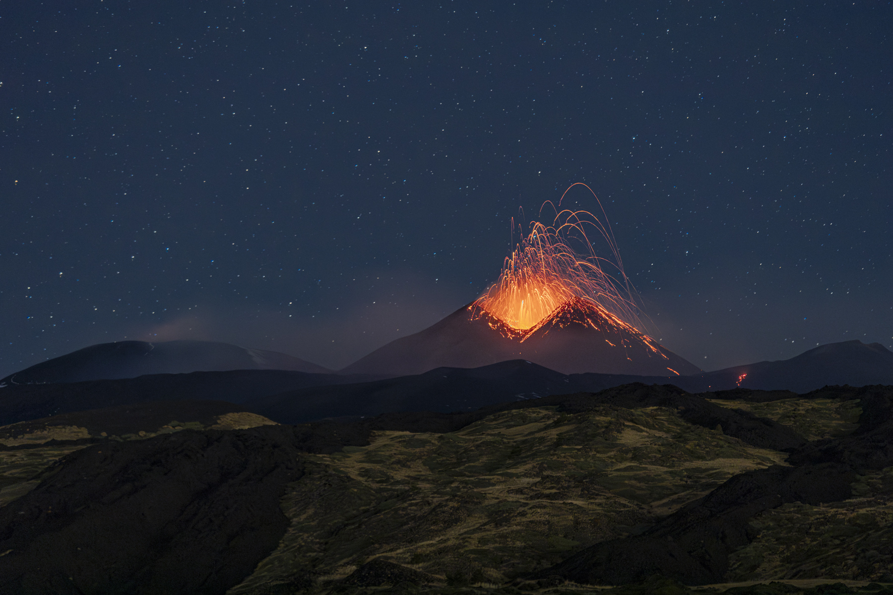L’Etna in eruzione ha sempre un grande fascino… Nella tua foto mi piace particolarmente l’essenzialità del paesaggio a contorno, privo di qualsiasi elemento distraente Bellissimo anche il cielo stellato