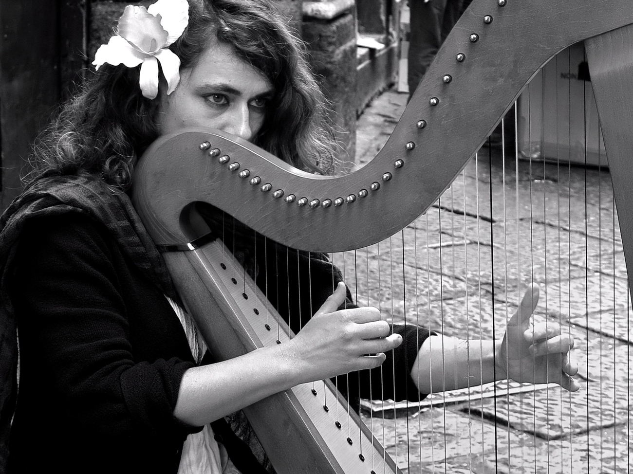 Un'arpa per strada! Ma quando la vedi? Devi andare a teatro o al Conservatorio di musica per vederne qualcuna.