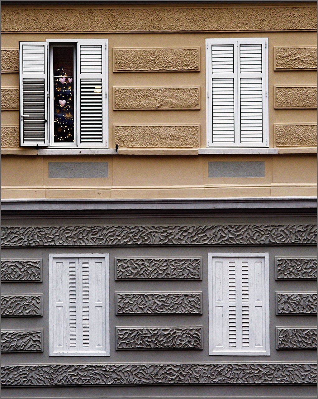 in più cogli un elemento: la finestra aperta che rompe il ritmo delle finestre chiuse con l'aggiunta della visione natalizia.
