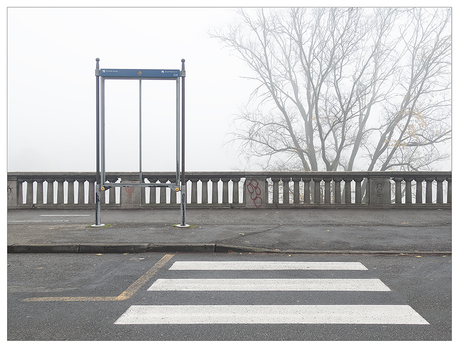 La foschia colora di bianco gli spazi tra le portanti della balaustra che diventano un motivo di continuità con le righe del passaggio pedonale. _________________ Belle foto. O perlomeno belle idee -> |