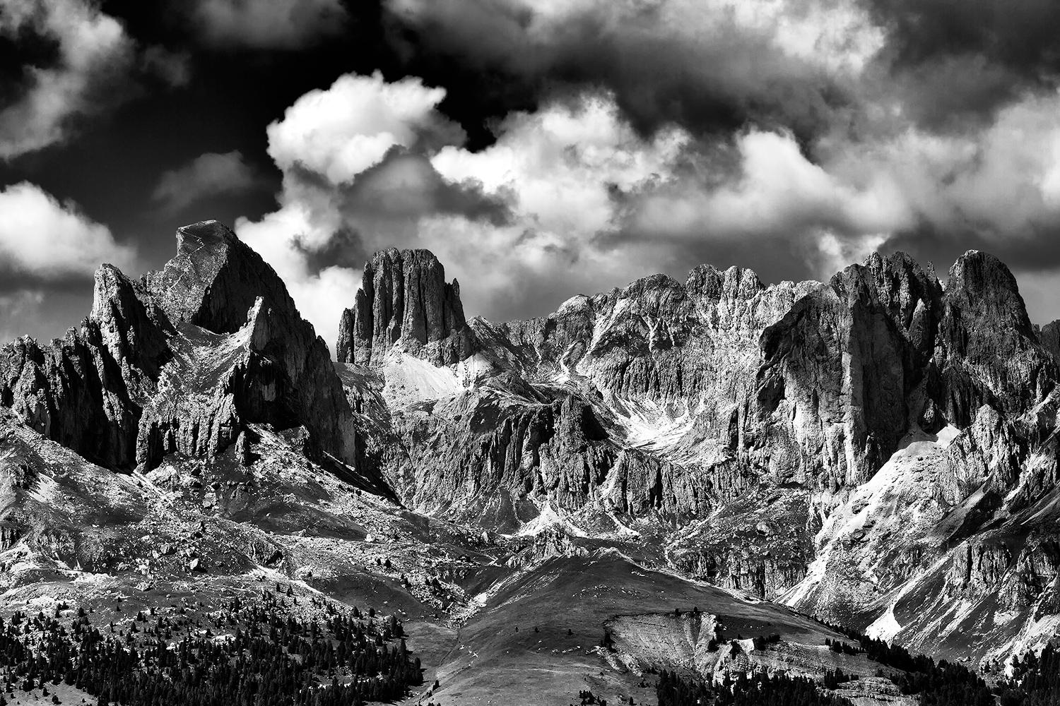 Un bianco e nero deciso e molto contrastato che esalta ancor di più le asperità di queste cime, grazie anche alla luce dura ha esaltato molto in contrasti.