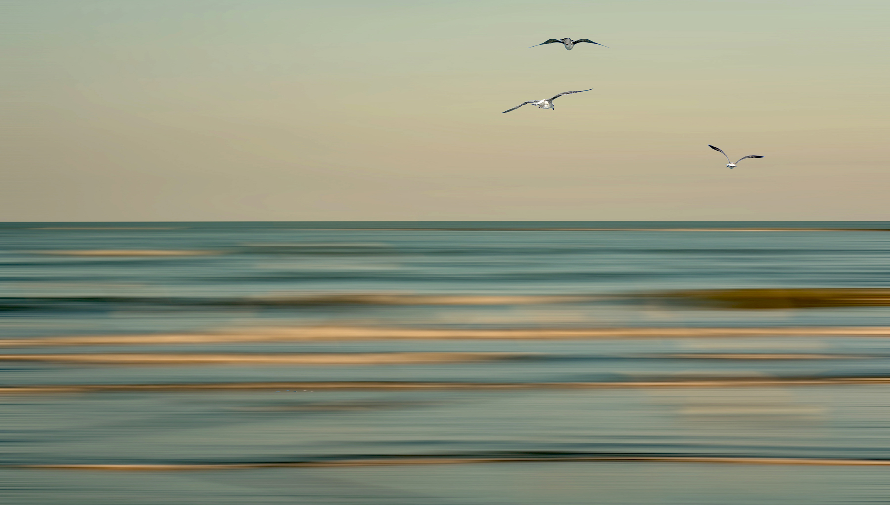| Gradevolissimo questo delicato alternarsi di tonalità calde e fredde sulla superficie del mare. Scenografico il volo dei gabbiani. Avrei puntato maggiormente a un 2/3 mare e 1/3 cielo ma anche così questa tua proposta mi piace. Ciao 👋 |