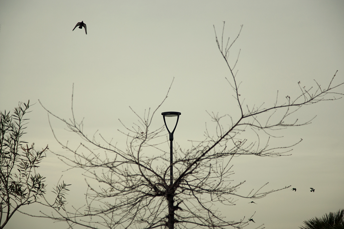 Il diverso grado di nitidezza tra i rami spogli ed il lampione (che in un primo momento mi sembrava un punto a sfavore) dopo un po' che la si guarda suggerisce un senso di movimento che rende vivi i soggetti inanimati.