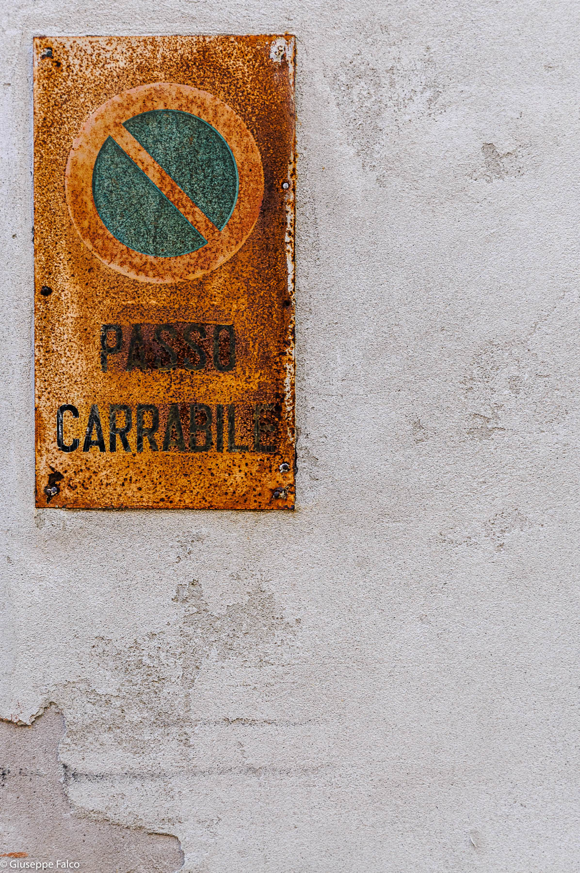 Composizione essenziale e corretta, ma quello che fa la foto è l’impronta materica, del muro e soprattutto del cartello “rugginoso”… Semplice e accattivante