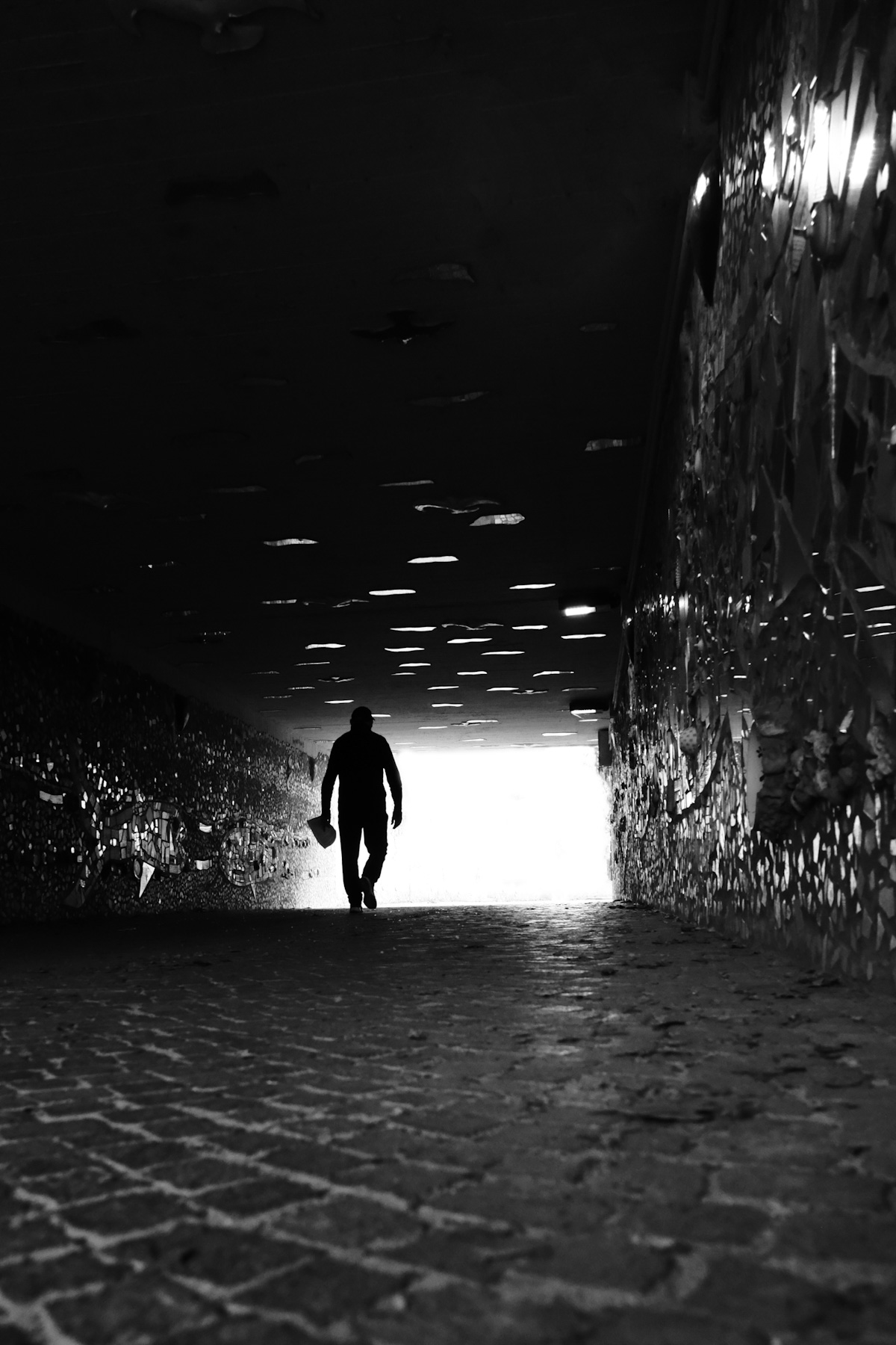 Ma subito il buio si rivela molto ben ravvivato da tutti quei riflessi frantumati che incuriosiscono e riempiono il grande spazio vuoto facendolo vibrare.
