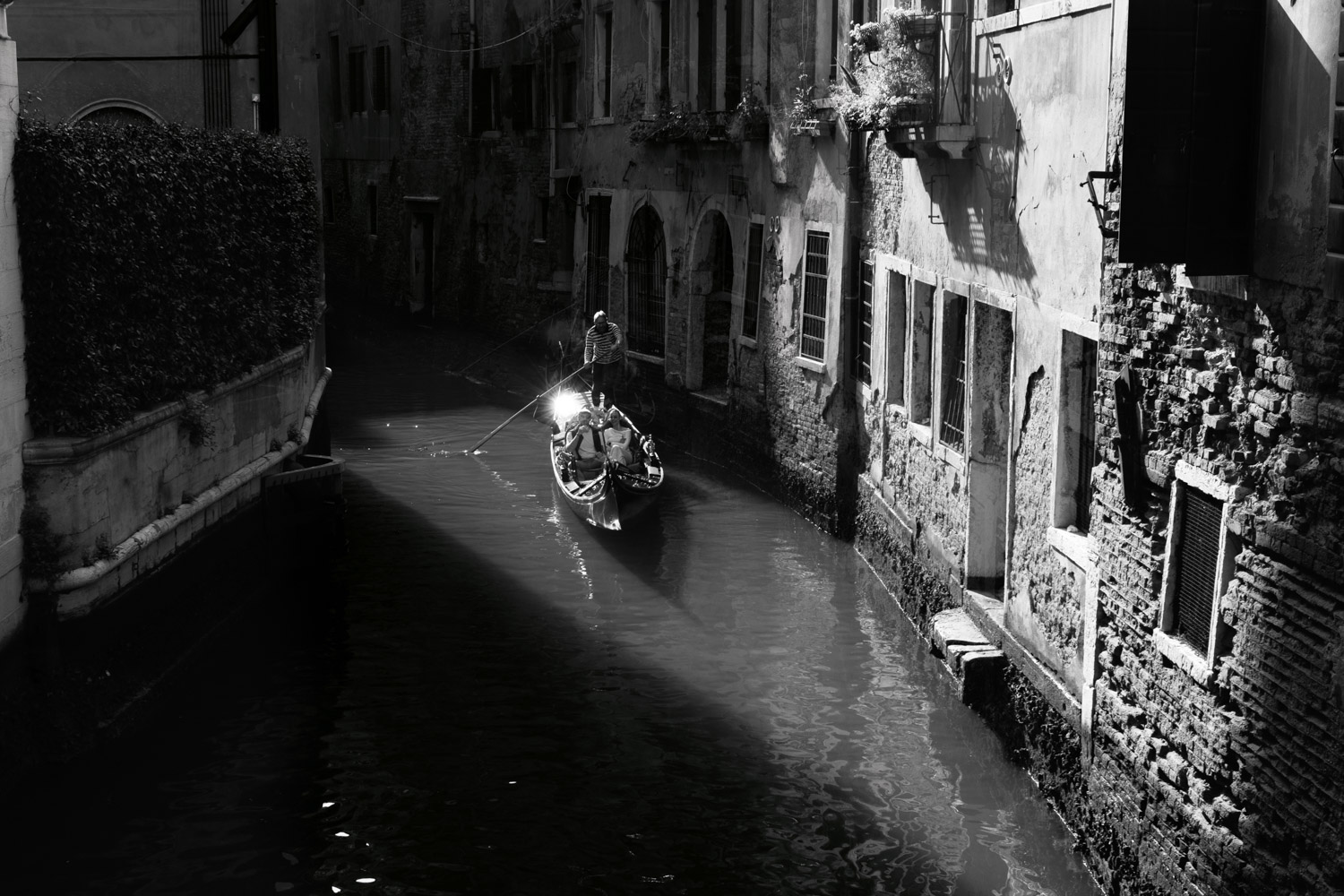 Molto interessante la scelta del bianco e nero, che fa emergere lo scatto dalle tonnellate di immagini banali e ripetitive di questa pur bellissima città. La gondola che emerge dall'oscurità del canale, la sagoma del gondoliere scontornata dal controluce e il riflesso vicino allo scalmo, fanno il resto. Per me è una prova validissima  |