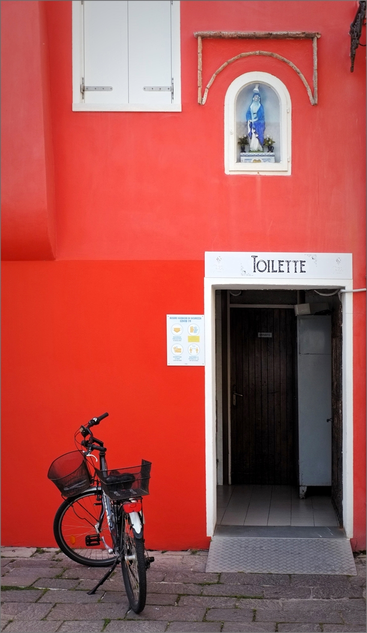 uno scatto che si presta a piu interpretazioni la piu ovvia il propietario della bici con un bisogno impellente ma anche l'abbinamento dei colori e la madonnina sopra la scritta non è male ottimo scatto  _________________ maurizio PaP-VaV |