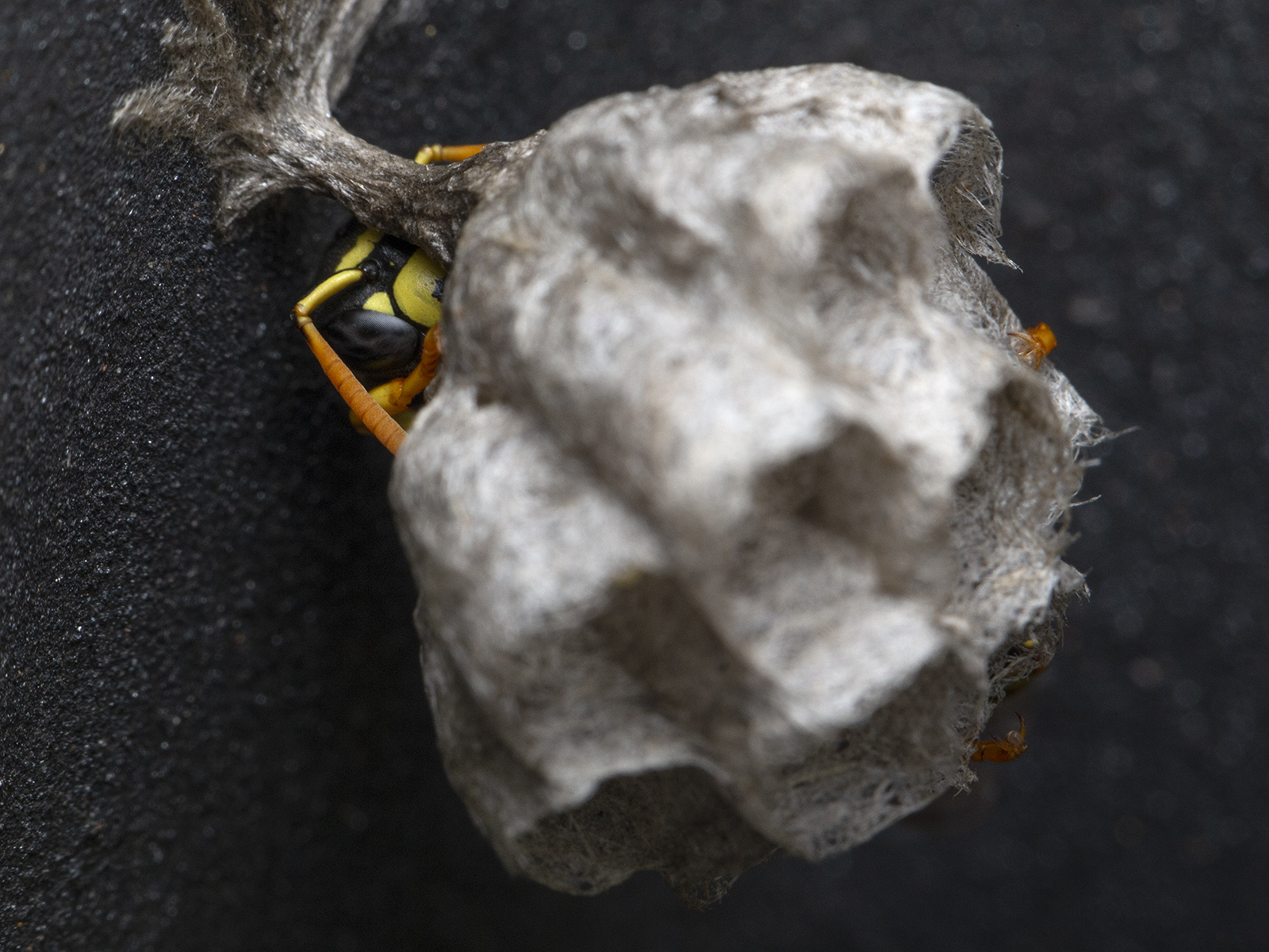 Al di là del titolo, si fa fatica a capire quale sia il soggetto,.la vespa è perfettamente a fuoco, peccato per la base dell'alveare tagliata.