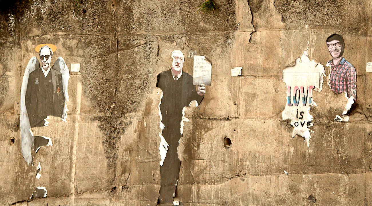 La foto l'ho scattata su un muro a Taormina nel settembre 2023 che riportava questi brandelli di carta incollata delle mitiche figure che probabilmente appartenevano a dei manifesti di non so quale precisa origine.