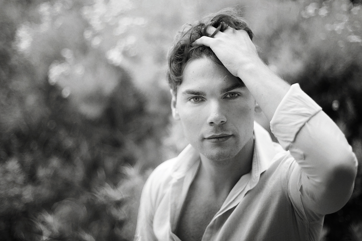 Bella , un bel bianco e nero con uno sfondo omogeneo . Lorenzo mi sembra proprio a suo agio posando per te. Si in effetti come diceva Antonio il gomito e molto vicino al bordo. Bravo Franco  |