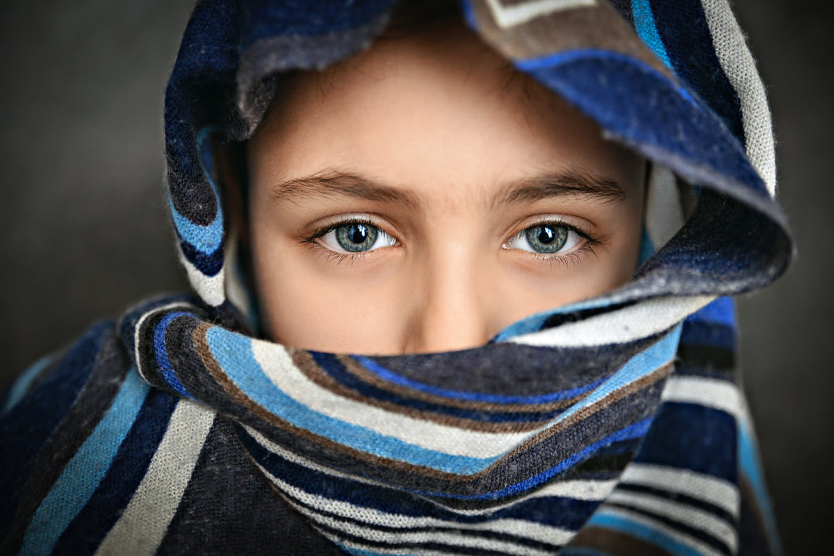 Meraviglioso ritratto Gian. Quegli occhi sono una calamita, sempre più intensi, maturi e consapevoli, ma brillanti e sognatori come è giusto che siano nella sua giovane età. Ottimi i richiami cromatici, le sfumature tra verde ,azzurro, antracite, rendono tutto così affascinante. Ci sarebbe stato bene anche un taglio più stretto. Complimenti a entrambi