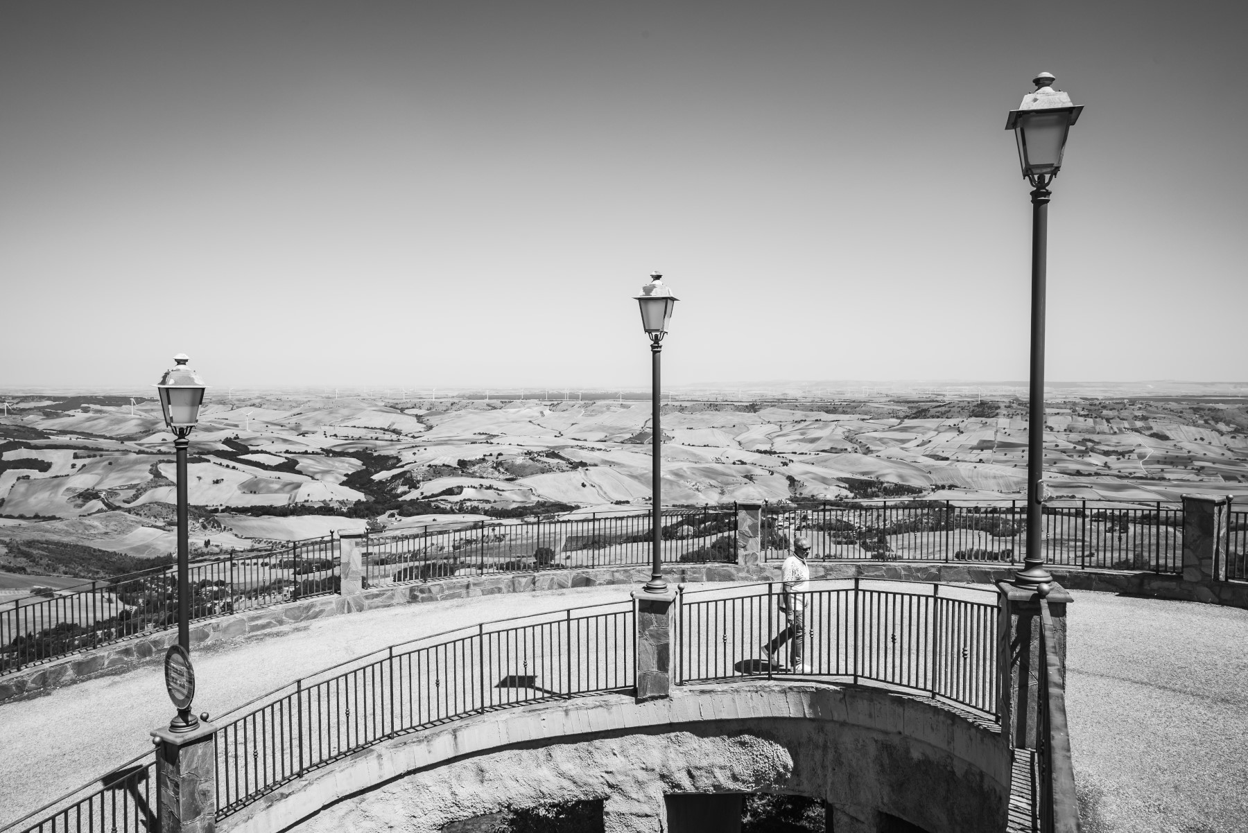 Una strada che sembra un belvedere, su uno sfondo sconfinato e arso.