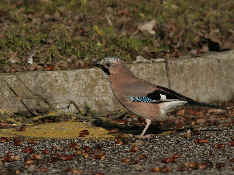 molto meglio l'ambientazione di ieri, ma così in strada si vedono molti particolari del piumaggio, zampe et... e poi è tra le ghiande