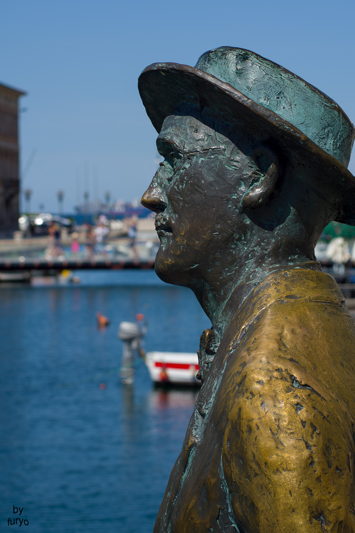 Interessante l'inquadratura che cattura il profilo della scultura.