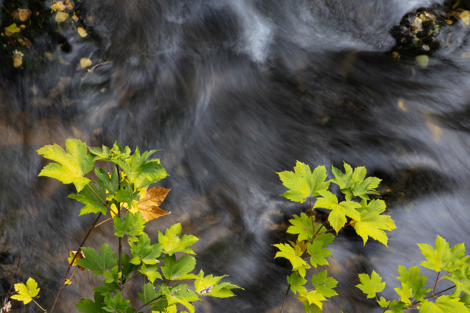 Mi piace molto lo stacco cromatico del fogliame contro l'acqua in movimento.