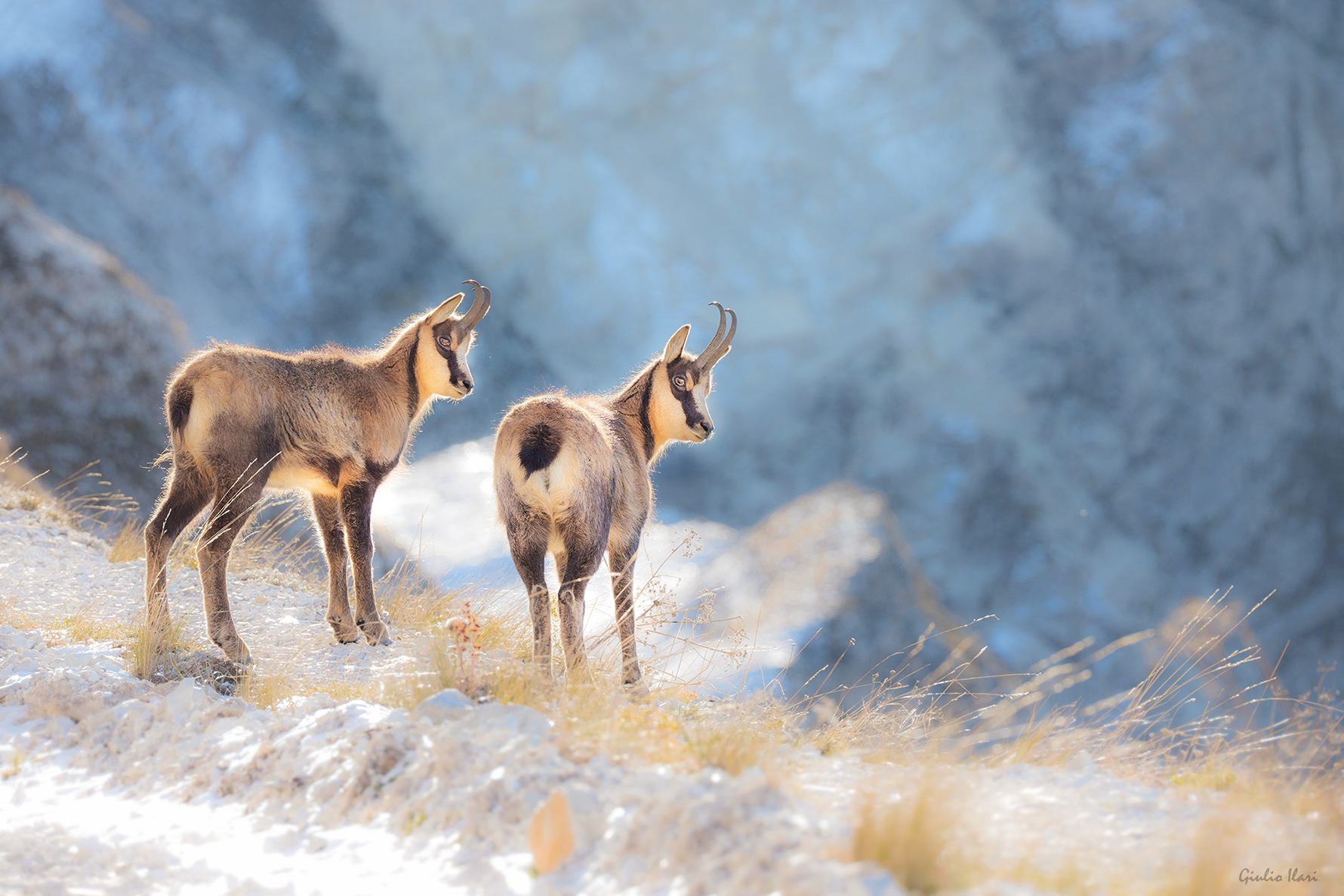 Immagine bella ma che ti spiazza con queste zone luminosissime e quel forte recupero espositivo sui camosci. Dalla luce sui profili risulta essere un controluce per cui i corpi dovrebbero risultare meno esposti.