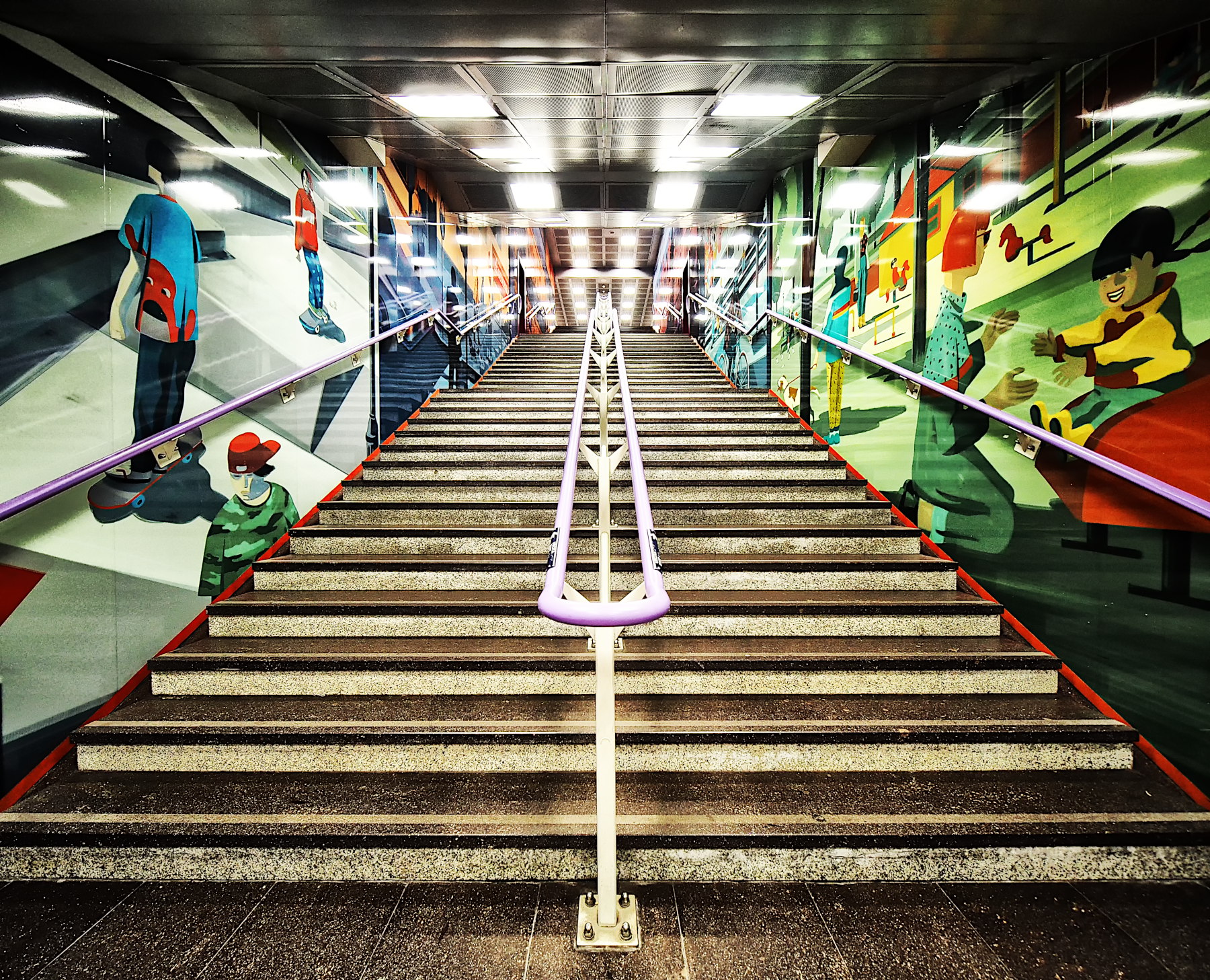 Scalinata della metropolitana. Milano, ottobre 2024 _________________ Fotocamere Olympus OMD e PEN, Panasonic G3. Software GIMP