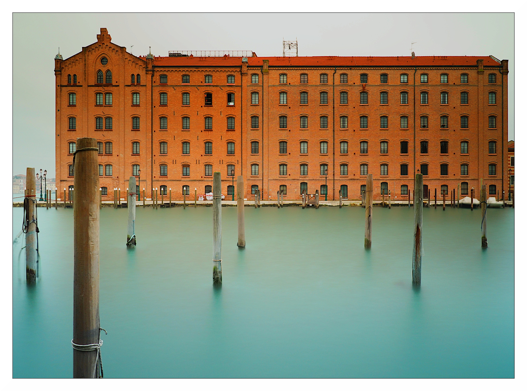Il tempo di esposizione e il colore dell'acqua in antitesi cromatica col palazzo sullo sfondo rendono l'immagine surreale e parecchio intrigante. Bella. Bravo. Ciao, Tiziano Ok!