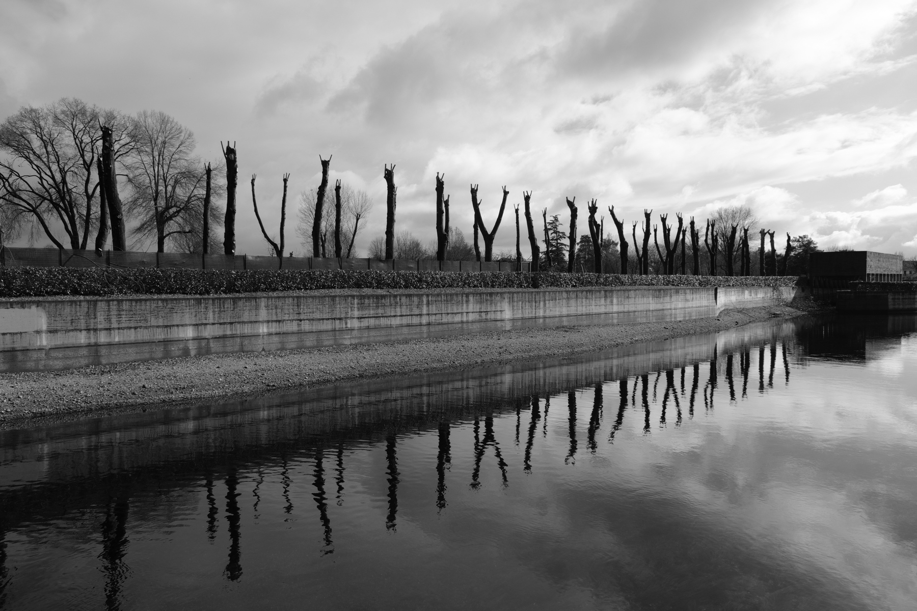 bella ripresa, la specchiatura degli alberi sulla diagonale dona profondità all'immagine