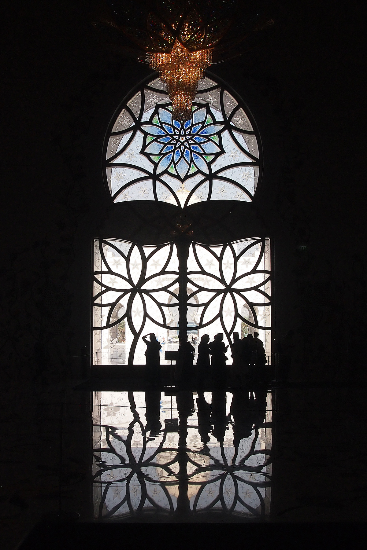 Ottimo il contrasto tra la bella vetrata e le persone sullo sfondo e ottimo l'effetto specchio sul pavimento.