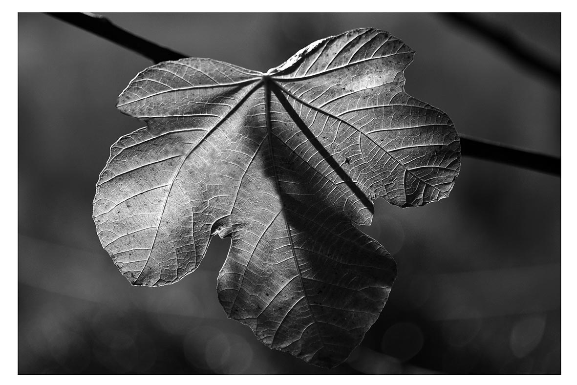 La foglia ha una buona nitidezza che ne mette in risalto tutte le venature, molto tridimensionali, mi piace molto il Bokeh delicato che accenna appena lo sfondo, conversione non aggressiva di grande eleganza.