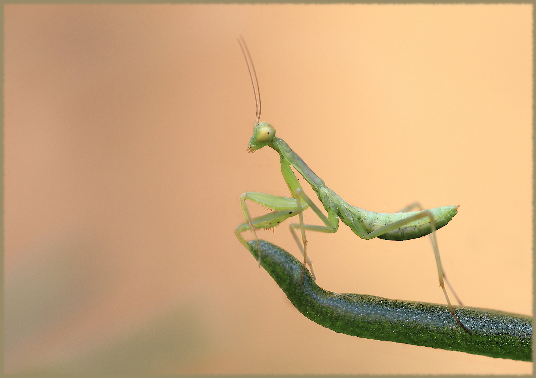 Lo sfondo è molto bello e mette in risalto la mantide che risulta
