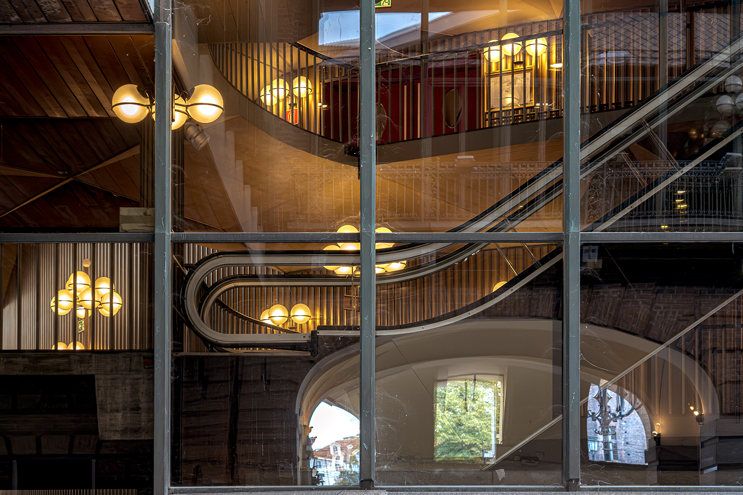 Un ricchissimo scorcio fatto di realtà e riflessi che si fondono. Piccoli accenni di natura, in mezzo a linee e curve, luci e scale. Una struttura sicuramente interessante e ricca di spunti che hai ben interpretato. Ciao