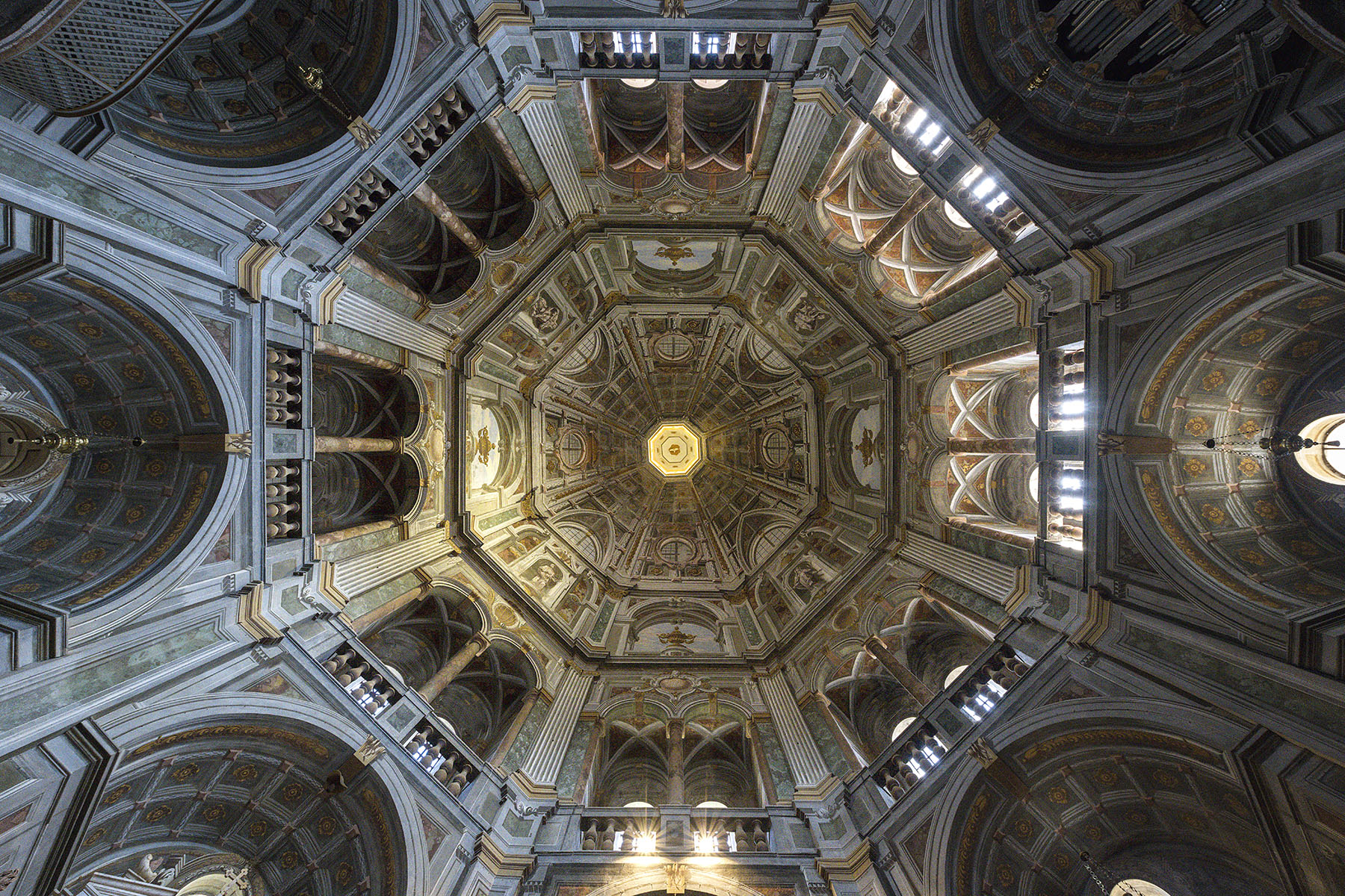 | Osservando questa immagine, si viene immediatamente colpiti dalla sua grandiosità architettonica La luce accarezza le superfici dorate e mette in risalto le texture del finto marmo e degli affreschi. Ciao Gianni. |