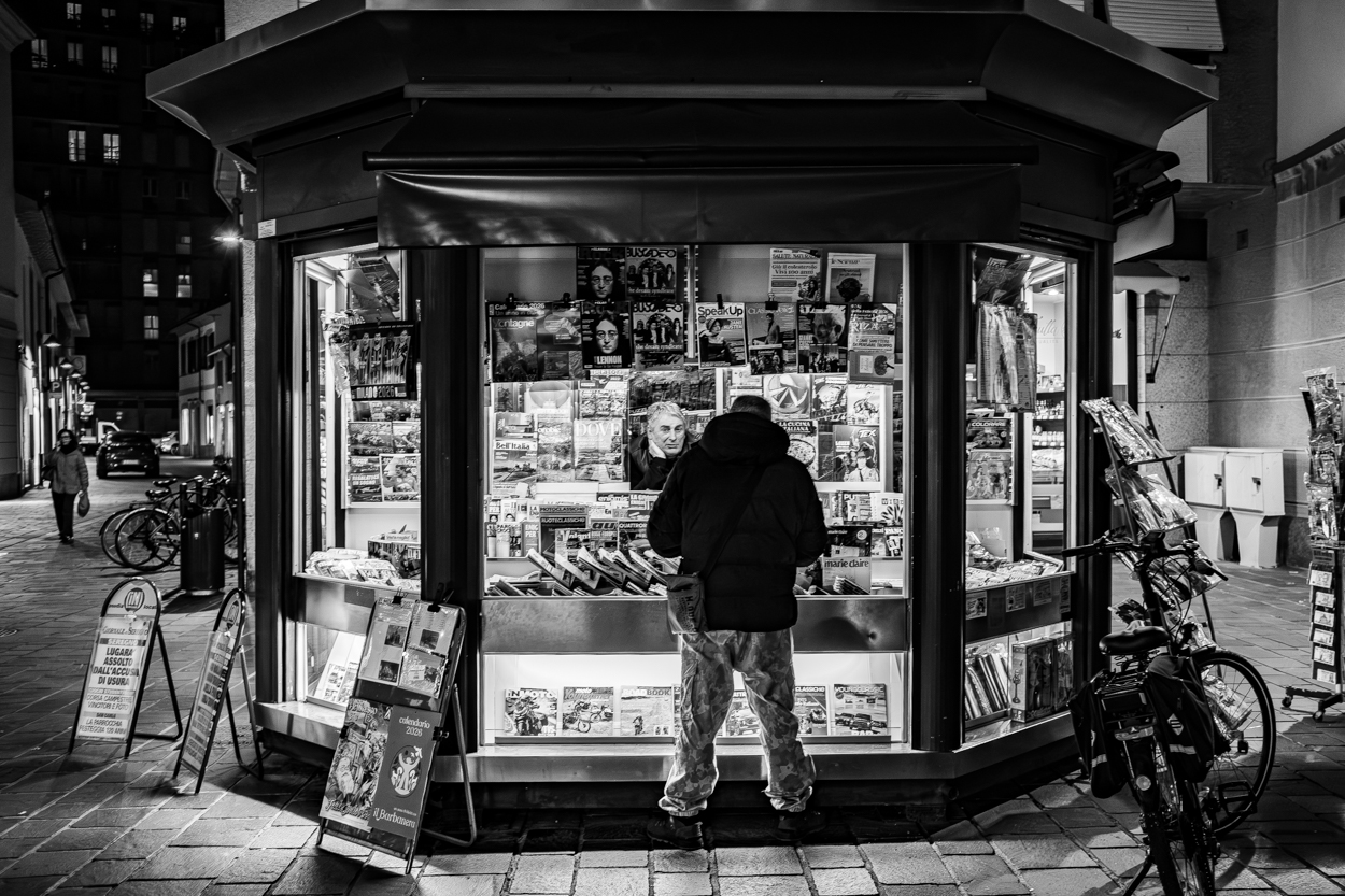 Ottimo scatto per lo splendido B&N e la gestione della luce. Scatto documentale di rilievo considerato, purtroppo, che le edicole stanno scomparendo  _________________