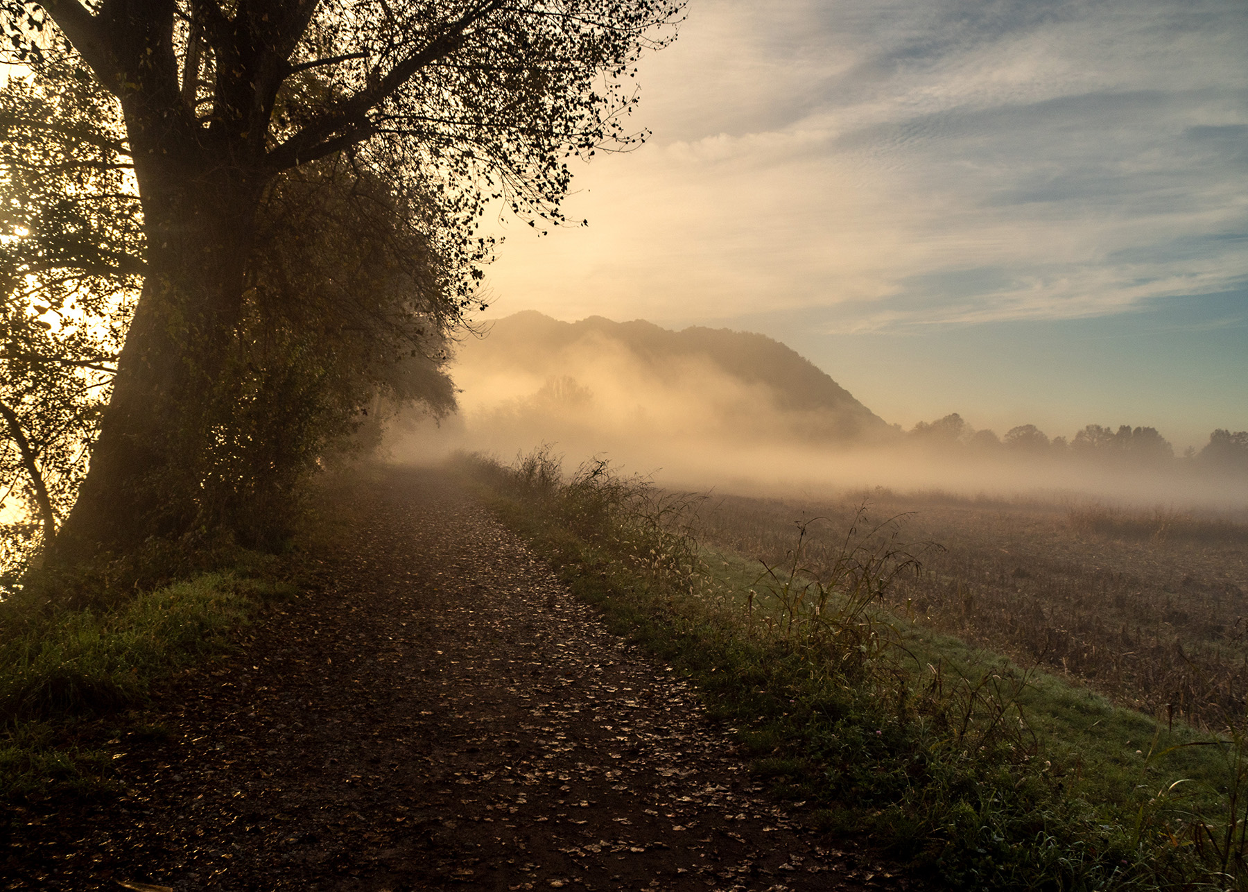 Bella la linea di fuga che incontra la foschia in lontananza.