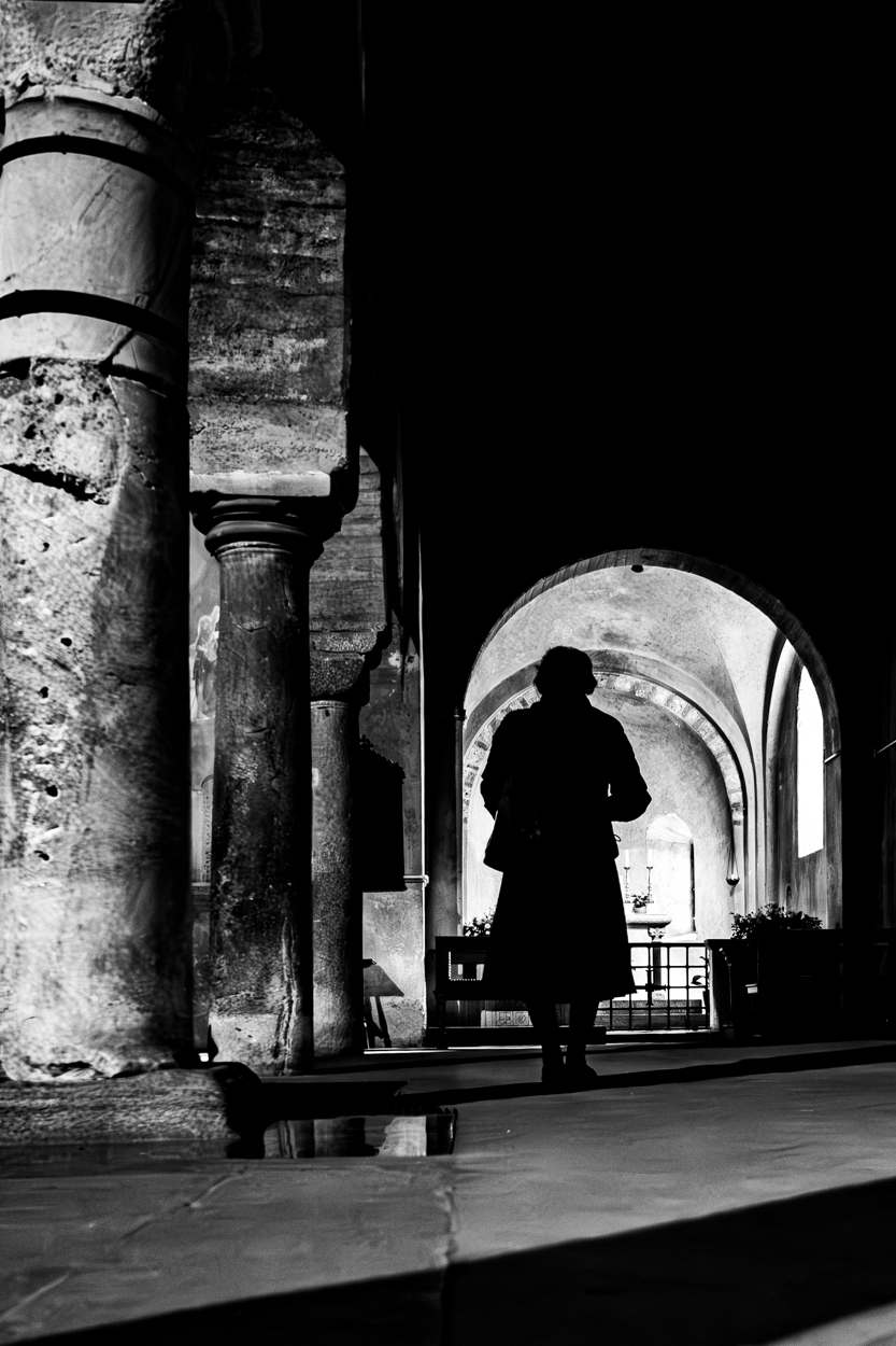 La persona al centro dell'immagine rappresenta il fulcro dello scatto e comunica un senso di raccolta e di silenzio.