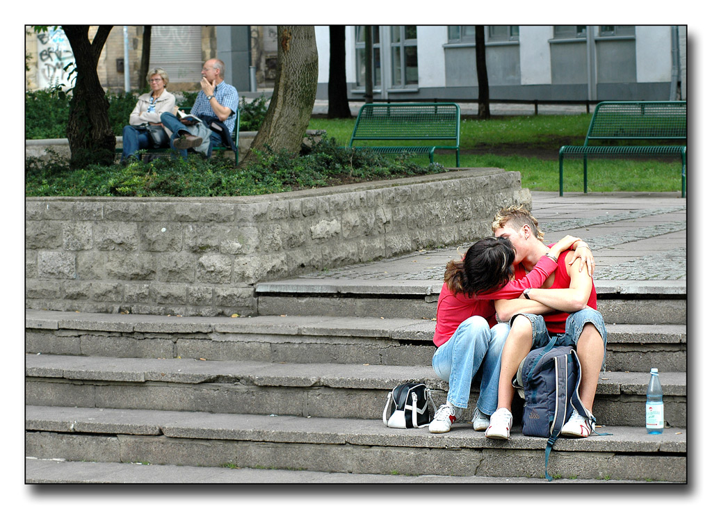 ...si poteva correggere la leggera sovraesposizione dei due giovani in primo piano, ma ho voluto lasciare lo scatto "nature" con la sola cornice aggiunta...