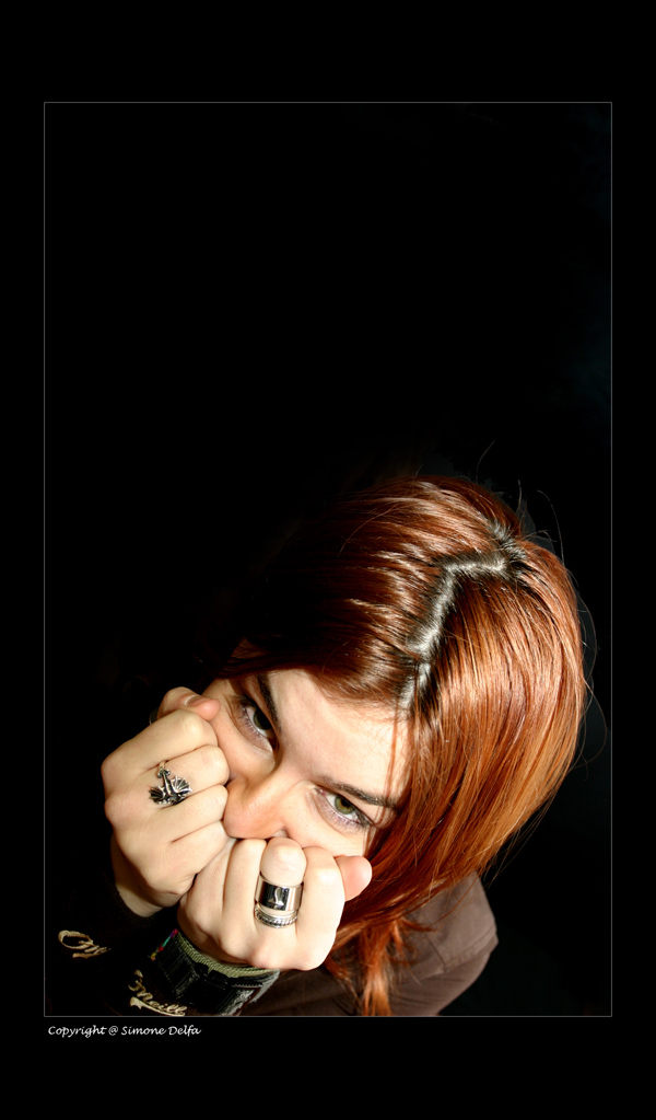 Ottima composizione!...mi piace il punto di ripresa ed il modo in cui hai posizionato la ragazza all'interno dell'immagine...bello anche lo sfondo scuro ed omogeneo...per la luce ...forse un pò troppo sparata...