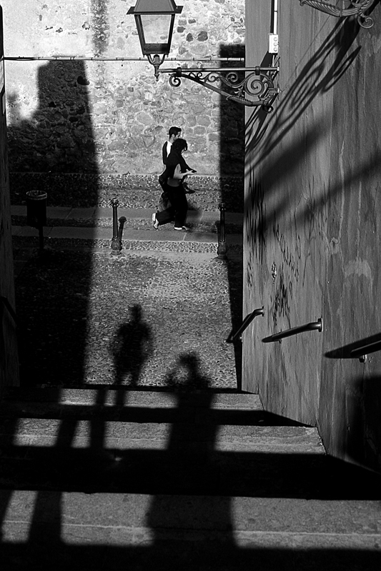 Ben composta la presenza umana, con questa doppia coppia ombre/passanti.