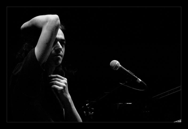 potrebbe dare molto anche come posa questa foto, non so se è voluto o no....ma trovo il microfono il vero soggetto della foto....la persona sfocata, poco leggibile nonostante il b-n e un po di maschera !!!!