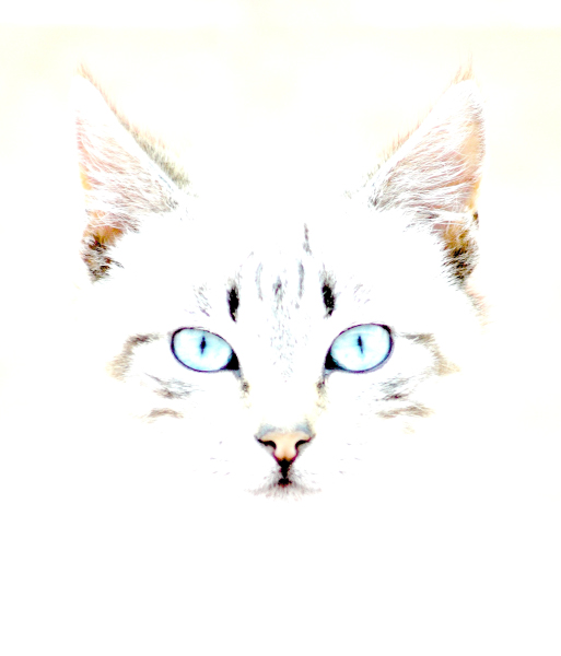 Molto intrigante questo ritratto in high-key: mette in risalto i tratti essenziali dell'essenza felina.