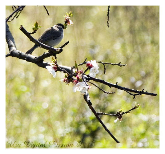 E' un pò in controluce ma il fatto che la capinera stringa nel becco un rametto di albicocco è inusuale..
