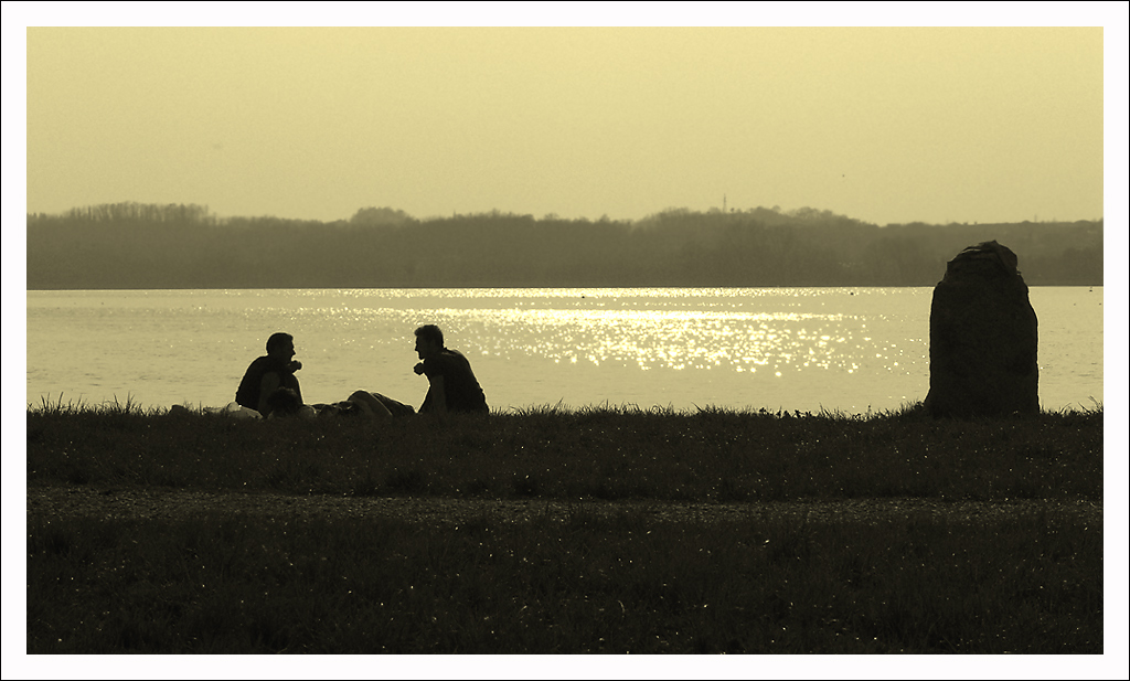 L'immagine mi infonde un senso di tranquillità... mi sembra di sentire le voci sommesse dei due amici mentre discutono sui temi più profondi della vita!