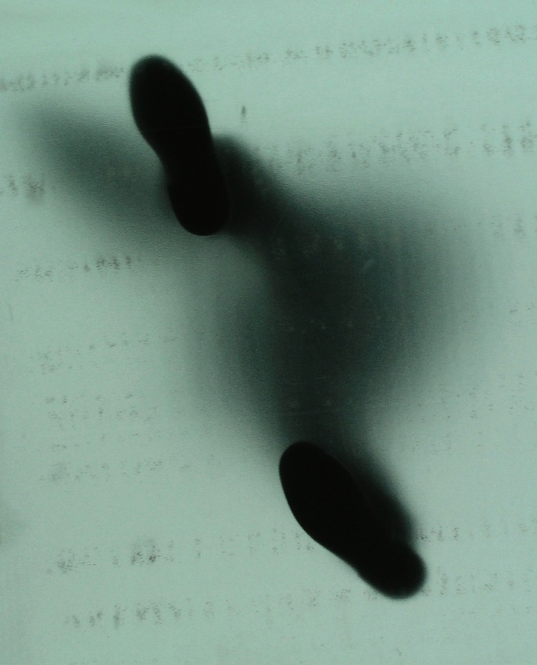 Per Stecco: lo scatto è stato fatto in un centro commerciale di Lisbona lo scorso anno. La similitudine delle strisce di polvere distribuite sul vetro opaco con lettere indecifrabili di qualche alfabeto aveva colpito anche me, ma il senso di ciò che cercavo di raffigurare era molto più semplicemente quello di una persona senza "piedi per terra", con la mente rivolta verso alti ideali (..la testa tra le nuvole?). Ho cercato di farlo attraverso la scelta di un'inquadratura non ordinaria, che disorientasse il processo mentale, l'automatismo che si genera in noi quando cerchiamo di "comprendere" una cosa, cioè circoscriverla e ricondurla a regole al fine di interpretarla: Speravo che il giudizio in questo caso sarebbe stato frutto soltanto dell'impatto emotivo: la suggestione contro il metro. Ops