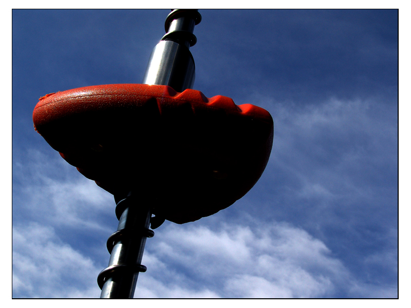 A me piace molto così com'è, compresa la bruciatura, non lo vedo come un difetto, in fondo è metallo lucido, e il metallo riflette. Bello soprattutto il contrasto cromatico rosso-blu e bella anche l'inclinazione della giostra, che dà un bel pò di dinamicità all'immagine.