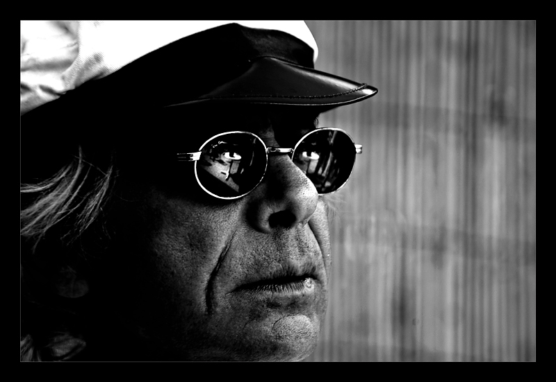 Anche il taglio molto stretto sugli occhi mette in risalto il riflesso degli occhiali (tavolo di un bar???) e contemporaneamente esalta la sua espressione vissuta: bravo mi piace veramente tanto questa tua foto!