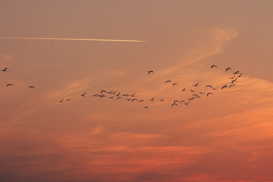 molto bella, anche l'opposizione della rigida linea biana...tecnologica...contro quella sinuosa naturale dello stormo