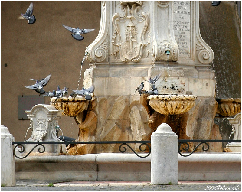 Ciao Enri...io la trovo efficace..se non altro per i titolo che gli hai dato..rende bene l'idea con quella "calca" per abbeverarsi..non credo sia importante aver valorizzato il monumento (l'avresti potuta chiamare Monumento Tot) o i piccioni (l'avresti potuta chiamare piccioni che hanno sete )