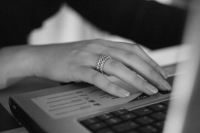 la mano e' molto bella. l'anello (bello!) distrae troppo. o levi l'anello o cambi composizione perche' com'e' ora io fatico a focalizzare l'attenzione sul portatile e sulla ricerca...